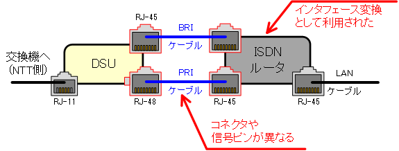 電話機などのアナログ装置の接続を残すため、DSUやTAといった様々な装置が必要でした。