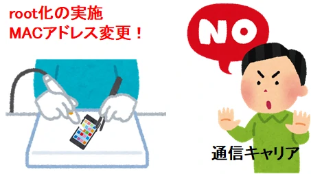 スマホのMACアドレス変更は、技術的にできないことではありません。事実上、困難な状態にあるのです。もし、スマホのMACアドレスを変更するとなると、スマホをroot化する必要があります。root化とは、スマホ本体にある設定すべてを改変できる特権を取得することです。