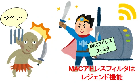 MACアドレスフィルタ機能が無くならない理由があるのです。その理由を次に説明します。