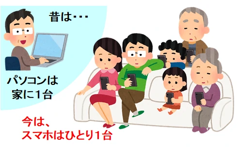 2010年頃までは、スマホは存在せず、ひとり1台の端末を持つ時代がくるとは、誰も想像できませんでした。パソコンは1家に1台しかなく、そのパソコンはみんなで共有して使う状況であり、インターネットへ接続できる端末は、限られていたのです。家族みんなが使う端末にインターネットの利用制限をすることはできません。